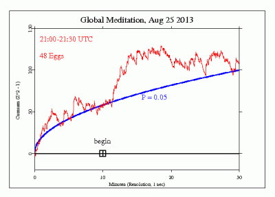 Dieses Projekt hat zweifelsfrei bewiesen ( die Chancen stehen bei mehr als eine Billion zu eins), dass das vereinte menschliche Bewusstsein eine Wirkung hat, die weit entfernt vom Zufall ist: