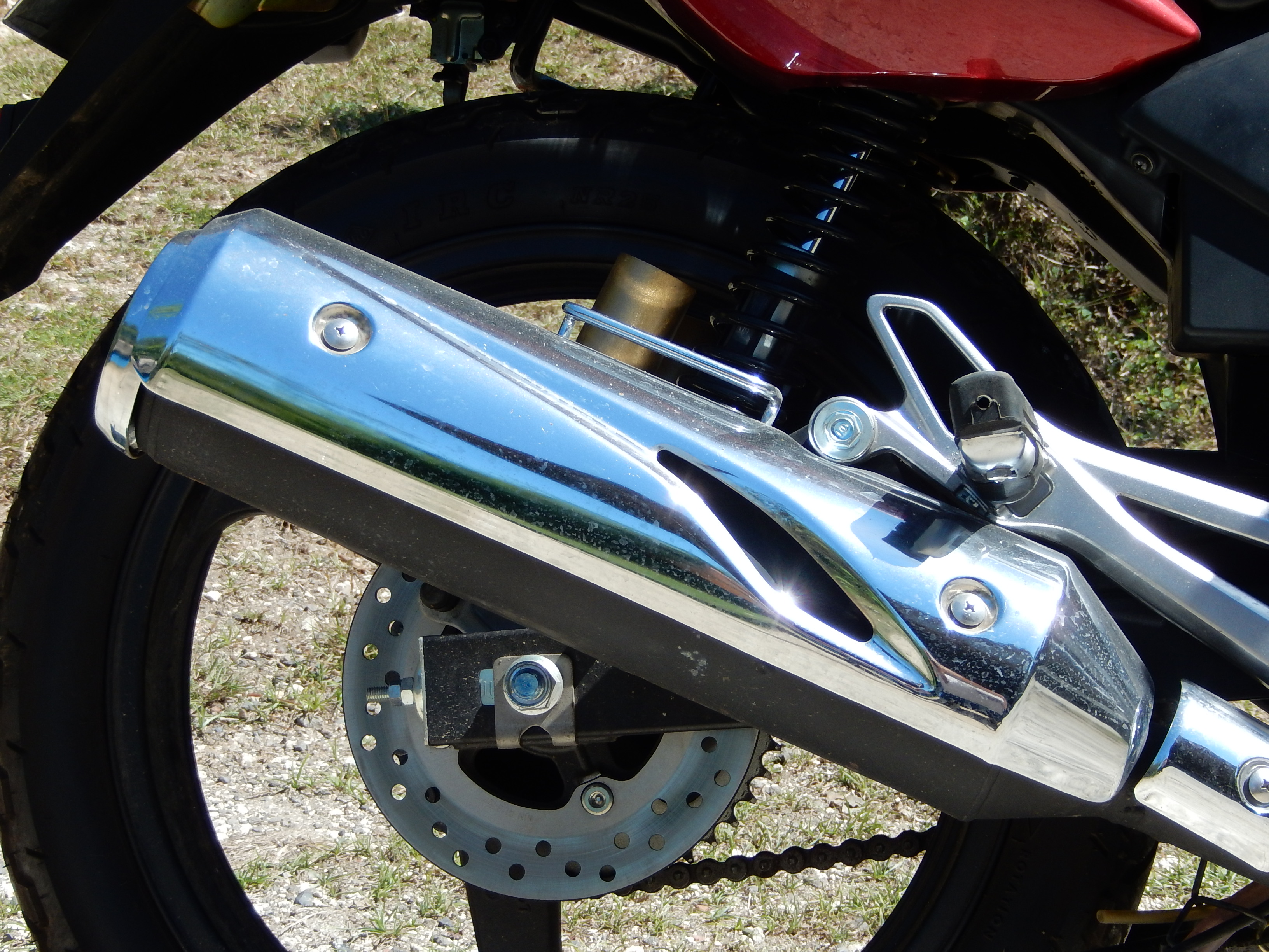 Der Knalpot (Auspuff) macht was her. In Ruhedrehzahl sehr leise, ganz prima, aber leises Cruisen wie mit der Bison oder der CB ist nicht gegeben. Der Auspuff will auch mit 3000 Touren schon von der Umwelt deutlich wahrgenommen werden.