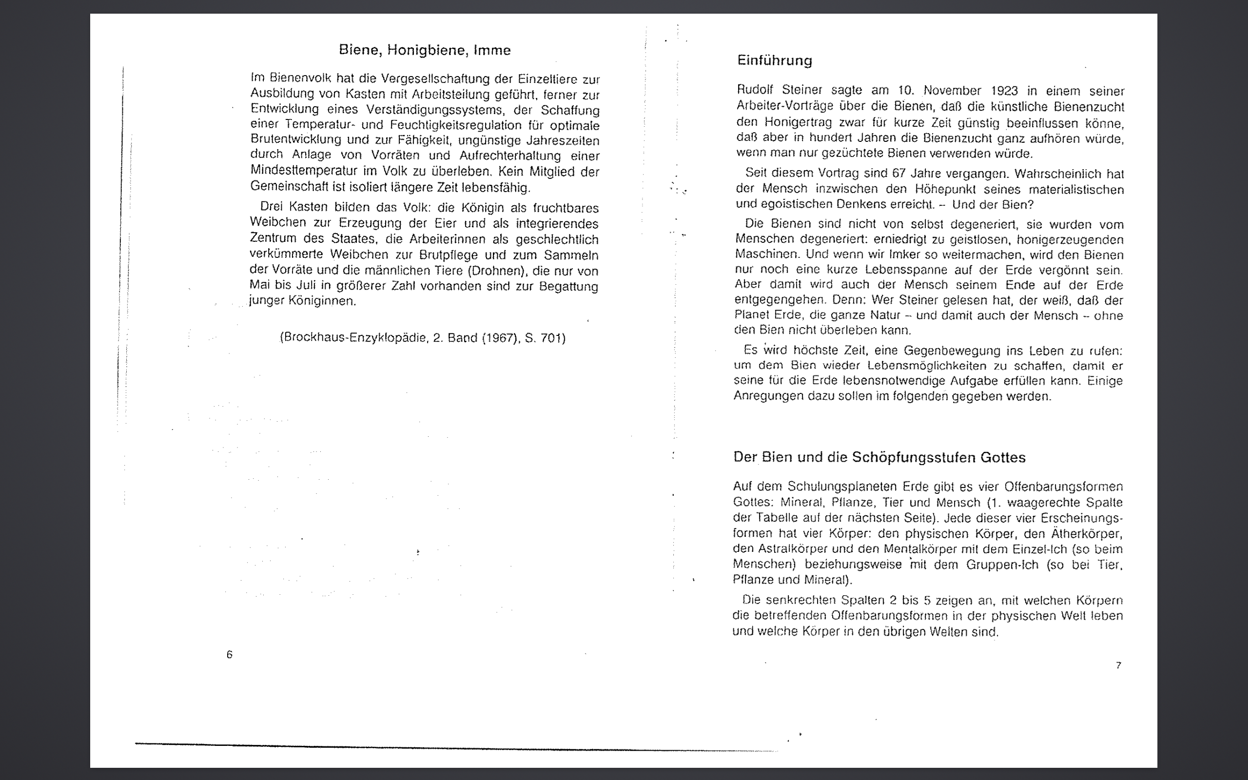 Wir sind die Bienen. Was den Bienen passiert, passiert uns. Die Bängster sind unsere Imker, die Denke ist genau die gleiche. Es funzt auch analog, wenn man das Eine verstanden hat, wird das Andere vollkommmen klar.