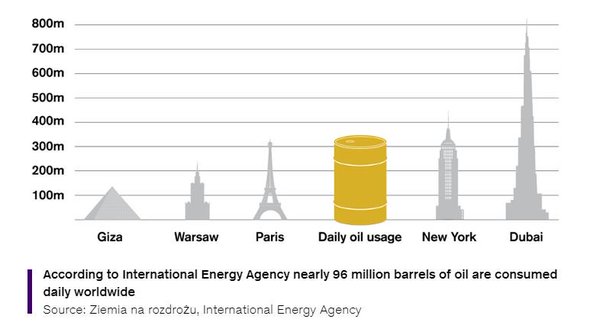 Verbraucht! So sieht das Tages-Faß Erdöl im Vergleich mit den Wolkenkratzern der Welt aus