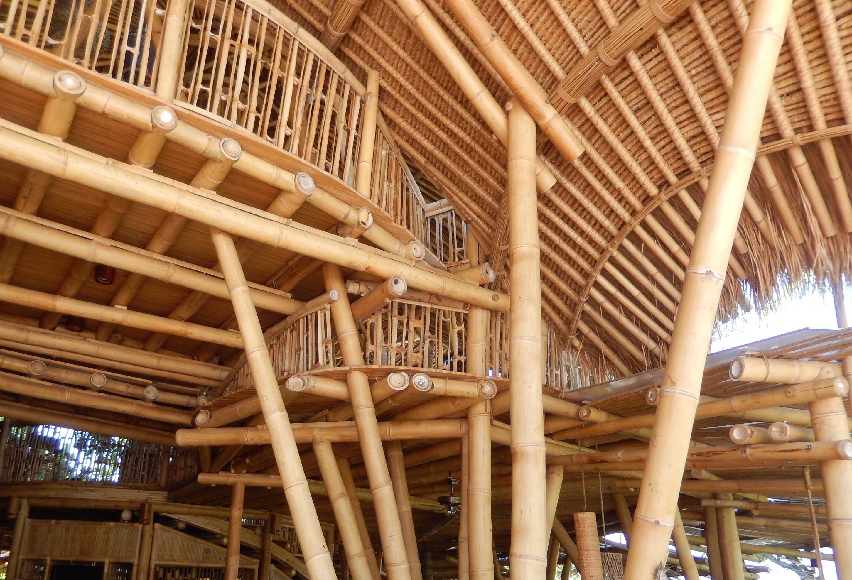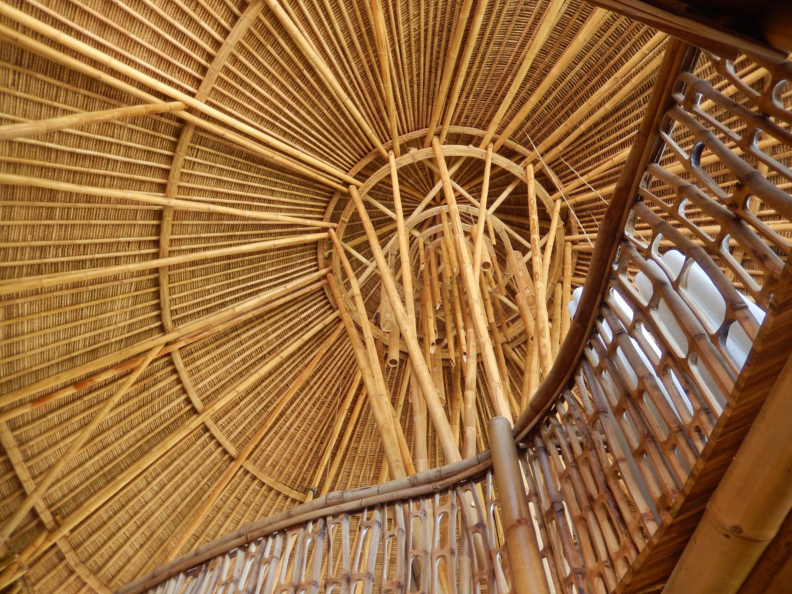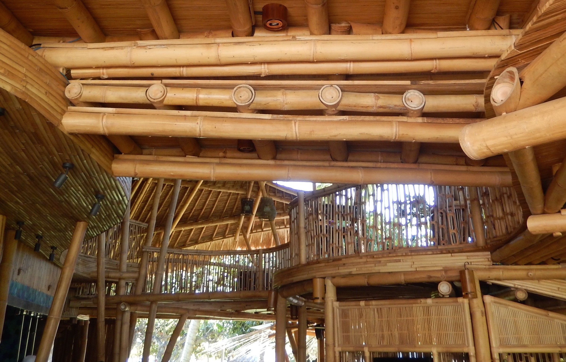 Mir will scheinen, dass die Konstruktores dieses Restaurants eine Kombination von Westtechnik und Tradition gemacht haben. Traditionell dürfte die Anordnung der Bambuselemente sein. Die Verbindungen aber, haha, die sind – wenn man so will – Betrug. Mir will scheinen, dass sie zum Teil Metallbolzen verwendet haben. So viel ich weiss, verwendet man traditionell auch Naturmaterial als Befestigungs-„Schnur“, umwickelt kunstvoll, statisch geometrisch handwerklich gekonnt.