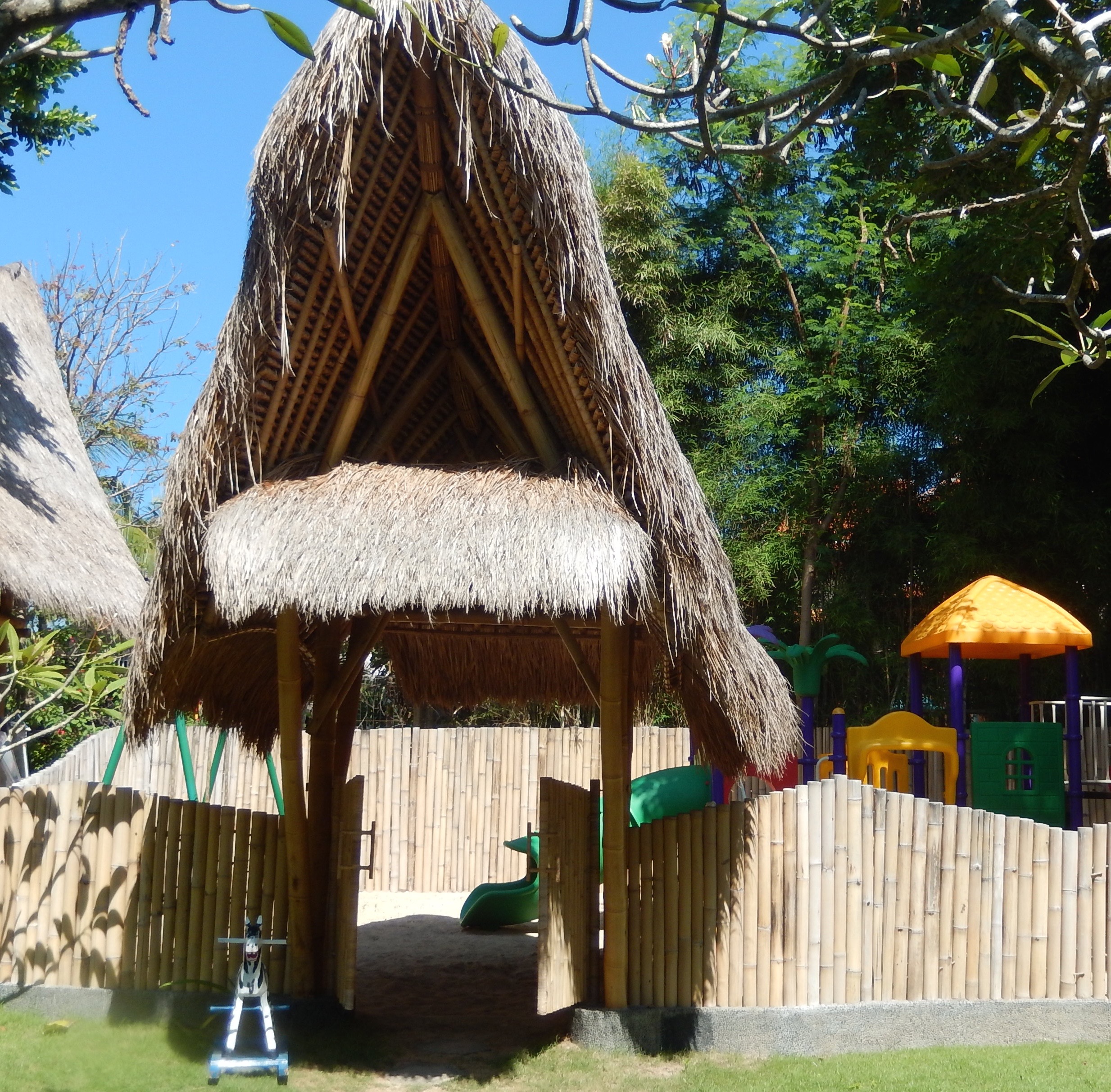 Das kleine Gebäude gehört zum Nachbarhotel, ist das einladende Dach zum Kinderspielplatz.