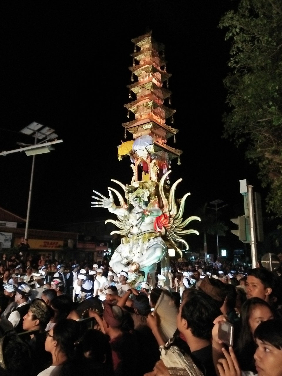 Wochen schon vor Ogo Ogo schaffen Balinesen all überall ideenreich und handwerklich saumässig kunstvoll überlebensgrosse Skulpturen von Schauergeistern. An Ogo Ogo werden diese Geister abends um 19 Uhr, da es schon dunkel ist, in Umzügen vorgeführt. Da geht jeder hin. Massen von friedlich gestimmten Menschen sind da. Durchschnittsalter? Ich schätze mal 30.