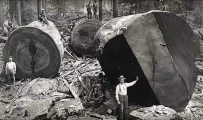 Nun noch eine andere merkwürdige Tatsache: es gibt sehr wenige Orte, wo man riesige Bäume sehen kann (die Mammutbäume in Kalifornien), deren Alter mehr als 100 – 2000 Jahre beträgt. Fast alle übrigen Wälder wurden vor etwa 250 Jahren künstlich angelegt, um das Verrbechen zu verbergen, das die Raubtiere hier auf dem Planeten angerichtet hatten. Es ist auf ganz alten Bildern zu sehen, daß es vor 200 Jahren an vielen Orten gar keine Bäume gab.