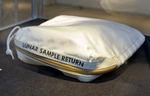 Die Tasche, mit der (angeblich) Neal Armstrong damals das Mondgestein eingesammelt haben soll…
