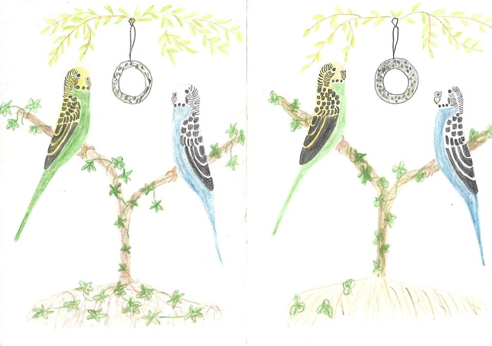 Dann hab ich unsere Wellensittiche gemalt, die uns unsere Freundin übergeben hatte/mußte.