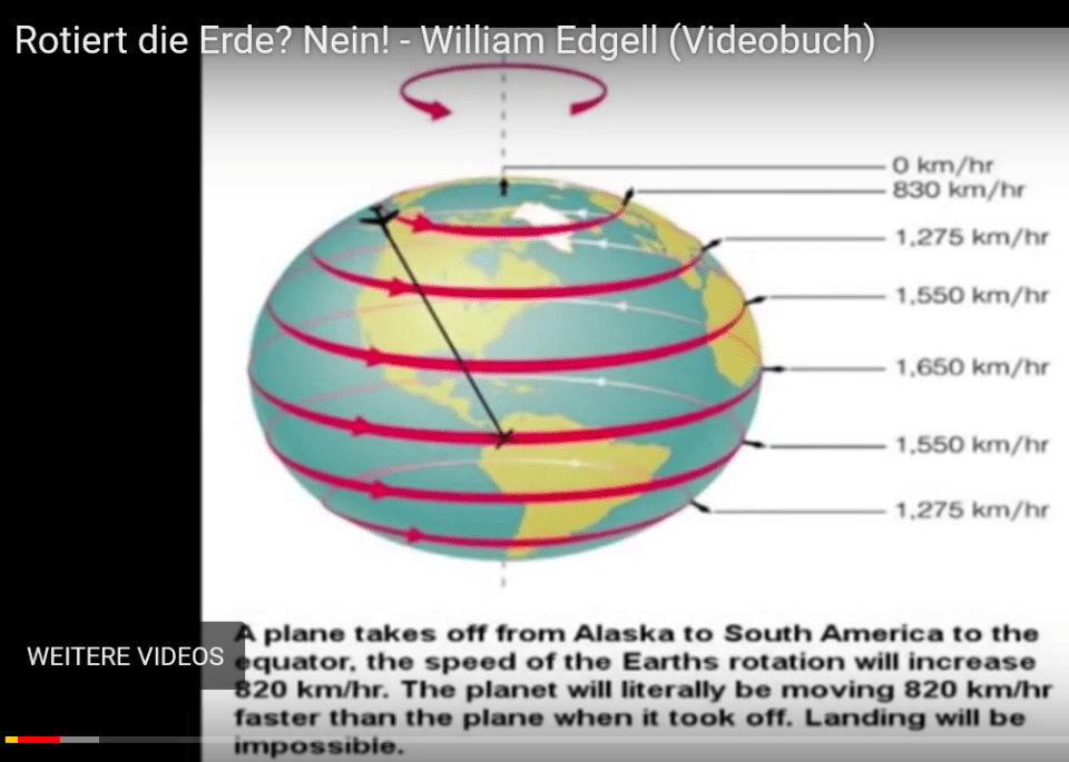 Verzwickter das mit dem Flugzeug, welches vom Aequator zum Nordpol fliegt. Es soll belegen, dass die Erde eine Kugel nicht sein könne.