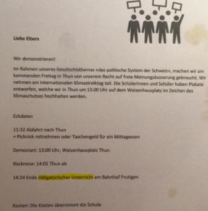 Wenn die C02-Theorie tatsächlich stimmen würde, bräuchte es diesen ganzen Marketing-Zirkus nicht. Die Klimalüge wird mit einer milliardenschweren Propaganda heraufbeschwört und jetzt werden sogar noch Minderjährige eingespannt, weil die Menschen den Schwindel durchgeschaut haben. An der Oberstufe Frutigen wurde der Klimastreik als „obligatorischer Unterricht“ eingestuft!