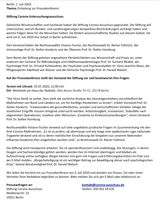 ACU – AUSSERPARLAMENTARISCHER CORONA UNTERSUCHUNGSAUSSCHUSS – Pressekonferenz Livestream