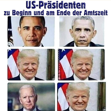 Da kann man sehen wie schnell man als Präsident altert, aber ich denke Biden wird nich lange als Präsident überleben.