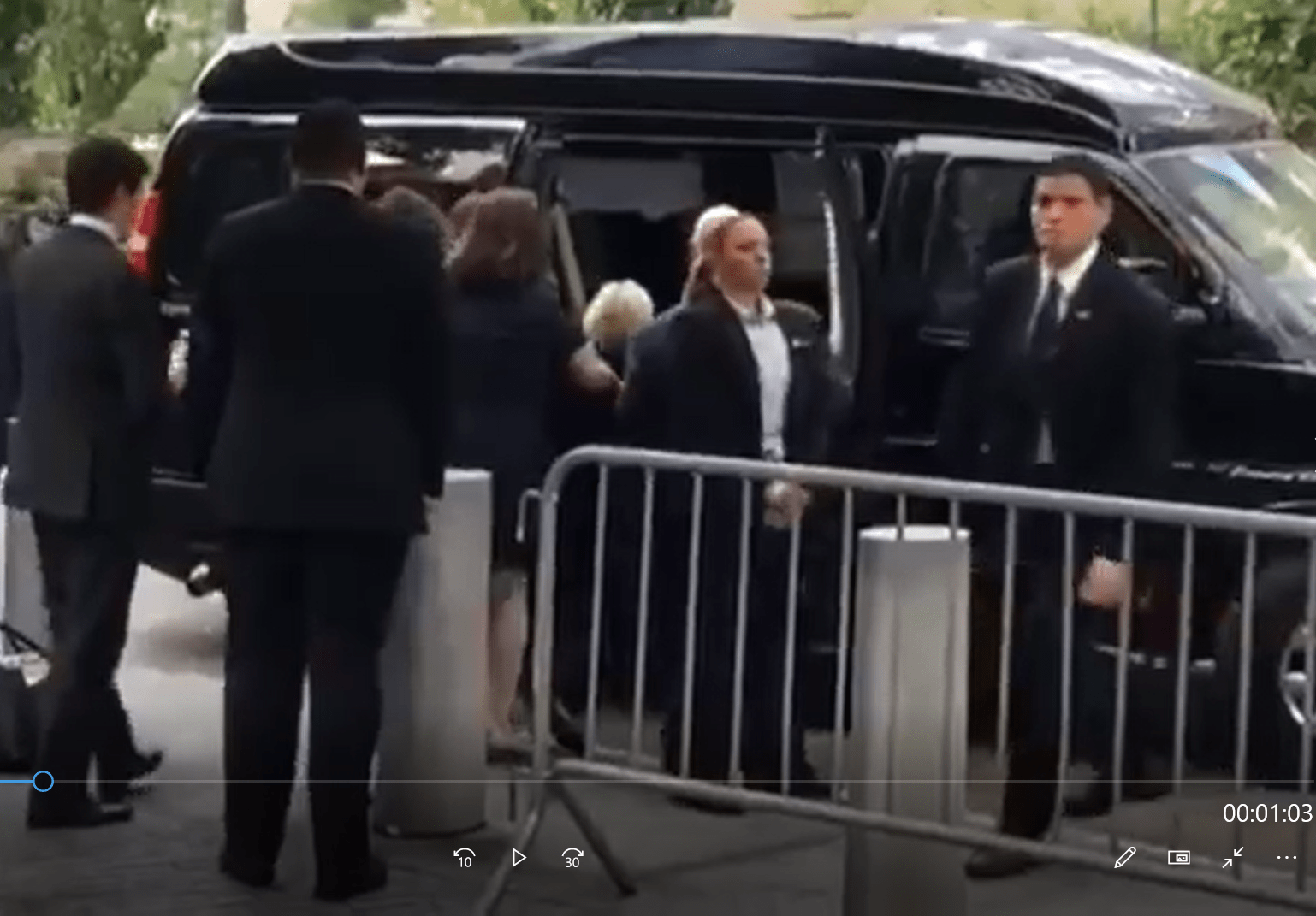 Hillary Clintons Hände sind die ganze Zeit hinter ihrem Rücken, weil sie mit Handschellen gefesselt sind!