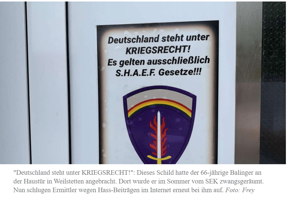 Denn dort lebt eine in der kruden Dienstgrad-Folklore als „First Lieutenant“ firmierende Jüngerin, die über den Messenger-Dienst Telegram ebenfalls fleißig postet und jetzt ebenfalls ins Visier der Ermittler geraten ist. „Wir wissen noch nicht, ob es da auch ein persönliches Band gab zwischen den beiden“, sagt der Göttinger Oberstaatsanwalt Frank-Michael Laue. Die Social-Media-Kanäle des Selfmade-Befehlshabers sind abgeschaltet“ Ich frage mich nun: Gehört Telegram auch zu den Social-Media-Kanälen? Wenn ja, wieso kann ich dann dort immer noch die „Hassmeldungen“ lesen und hören? Weiter heißt es in dem Bericht des Schmierers weiter: “ Am Mittwoch jedenfalls rückte kurz vor sechs Uhr das Sondereinsatzkommando SEK in Weissach im Tal an …“ Und genau an diesem Mittwoch ist der Schmierer am Ort des Geschehens und schreibt um 6:00 Uhr den Bericht. Glaubt irgend jemand, das SEK würde „Journalisten“ darüber informieren, wenn sie zuschlagen??? Ein paar Zeilen weiter heißt es: „Der 66-Jährige …“ Jansen hat in seinen Sprachnachrichten öfters erwähnt, dass er 54 Jahre alt ist. Jetzt ist er auf einmal 12 Jahre älter? Haben die gar nicht Jansen verhaftet?