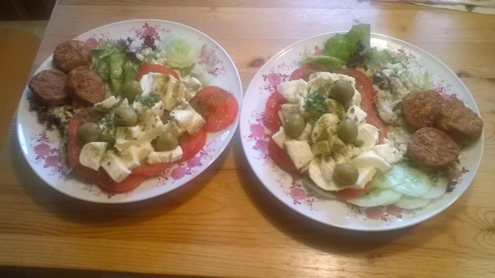 Also haben wir, meine Frau Rosi und ich gedacht, wir entfliehen dem auch, wenn auch nur für ein paar Stunden. Wir haben es uns dann bei einem Mix von Röstis und Buletten mit einem frischen Salat und hausgemachter Sahne-Vinaigrette mit eigener Kräutermischung dazu ein Rotwein gemütlich gemacht. Und haben mal den ganzen Sch..ß vergessen.