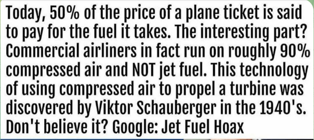 Es sind die, welche die Medien und die Bildungssysteme am Wickel haben und es saugut finden, daß Passagiere für großes Geld Treibstoff kauft, der nicht existent ist und daß dieses Geld in Form von Steuern in ihre Taschen fließt – in die Taschen der Betrüger hinter den Kulissen.