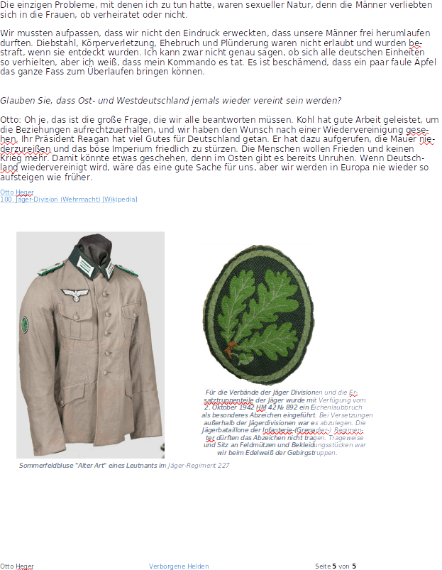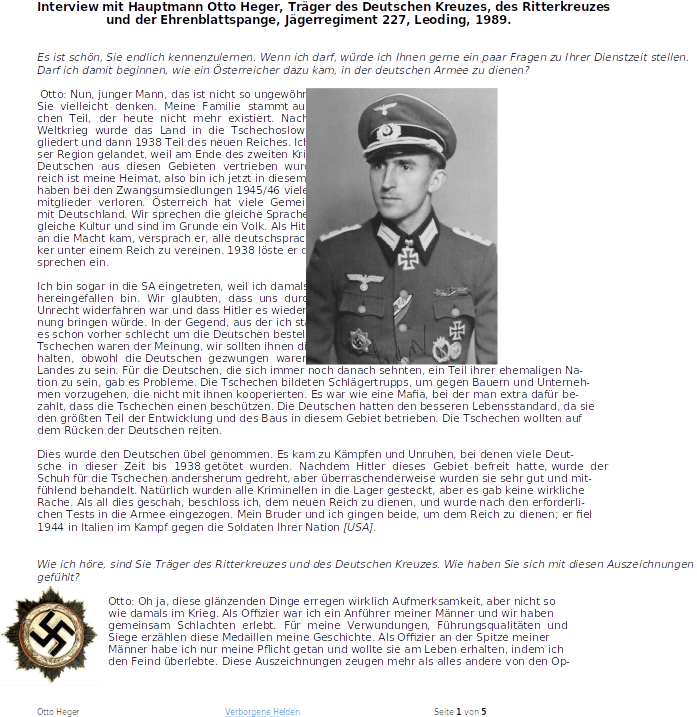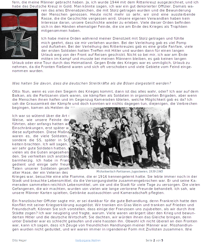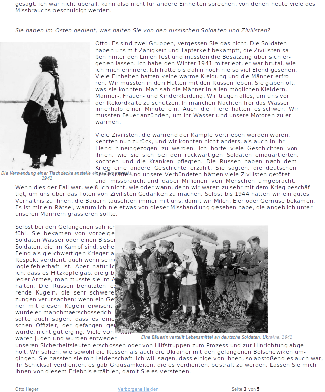 Es geht nicht um Beschönigung von Krieg. Auch geht es nicht um Glorifizierung der damaligen Deutschen. Es geht darum, den von den Siegern gewobenen Verleumdungsteppich weg zu ziehen und die darunterliegenden nackten, ungeschminkten Wahrheiten zu erkennen. Was den damaligen Deutschen an Grausamkeit zu Unrecht nachgesagt wird, das bestimmt das Leben eines jeden einzelnen Deutschen heute. Es ist ein Unterschied, ob Mensch „weiß“, daß sein Opa ein Monster, oder ob er „weiß“, daß sein Opa rechtschaffener Mensch war. Im Unterbewusstsein und Bewusstsein mit einem Monster-Opa zu leben, das lähmt. Dies muß ein Ende finden.