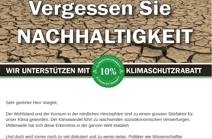Mal reinziehen diesen Satz: „Wir unterstützen mit 10% Klimaschutzrabatt“.