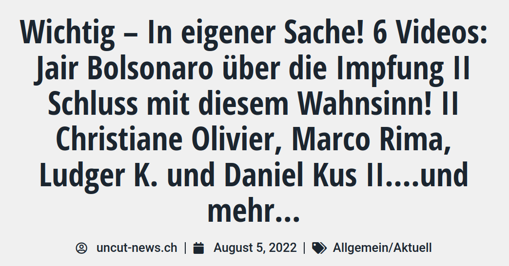 Bis zur Stunde hatte ich keine Antwort auf die Frage, warum Putin, Trump und Bolsonaro das Impfen empfehlen, da ich weiß, daß diese Männer nicht gegen, sondern für ihre Völker arbeiten.