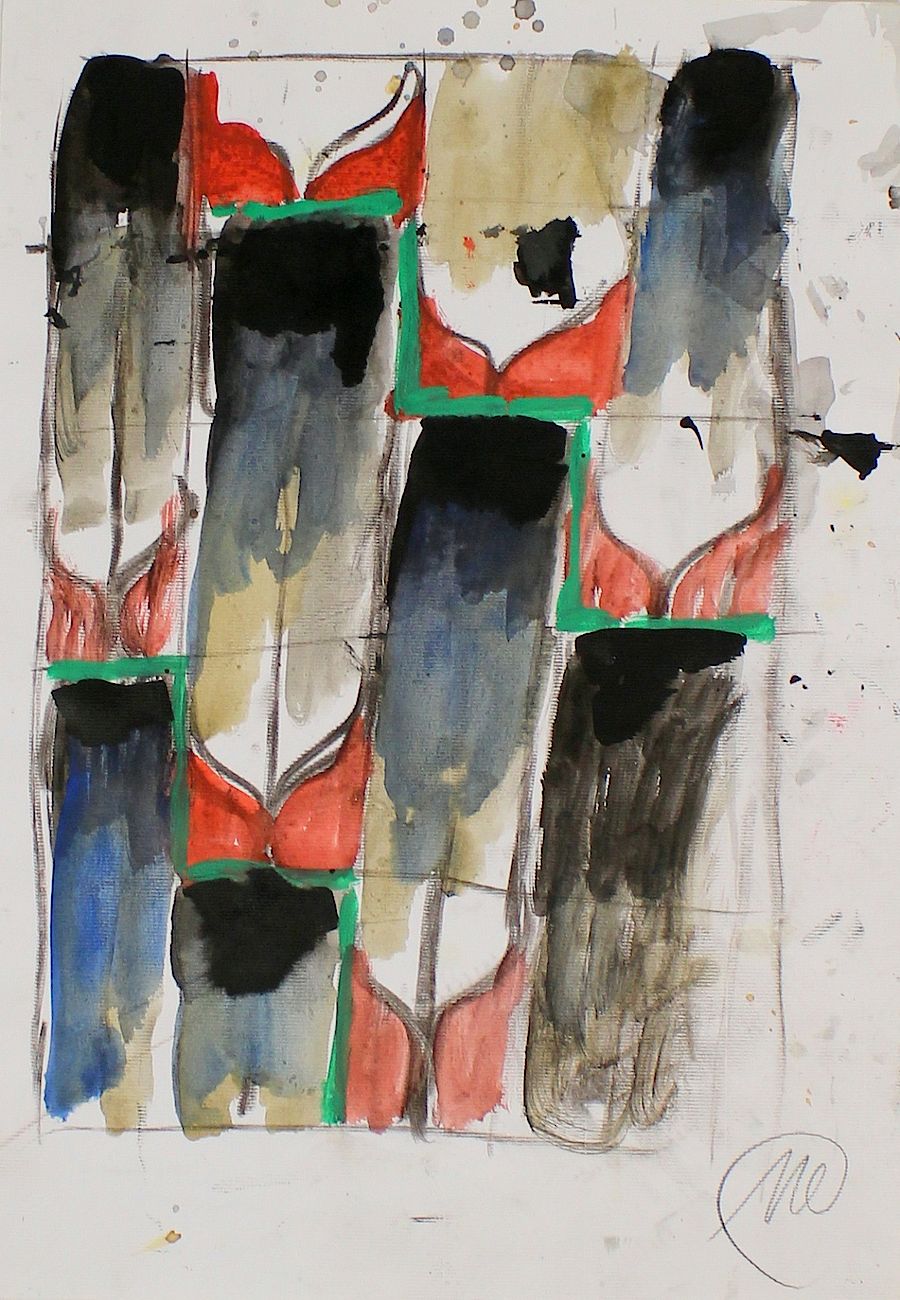 Auf einer Vernissage mit Prof. Lüpertz, der eine Laudatio für sein „Meisterwerk“ (s. fokgendes Bild) und einen vom ZKM begnadeten Schmierfink (solche Namen merke ich mir nicht) abdrückte, stand ich vor einer drei qm großen Wandschmiererei und mußte lautstark einen Witz abdrücken:
